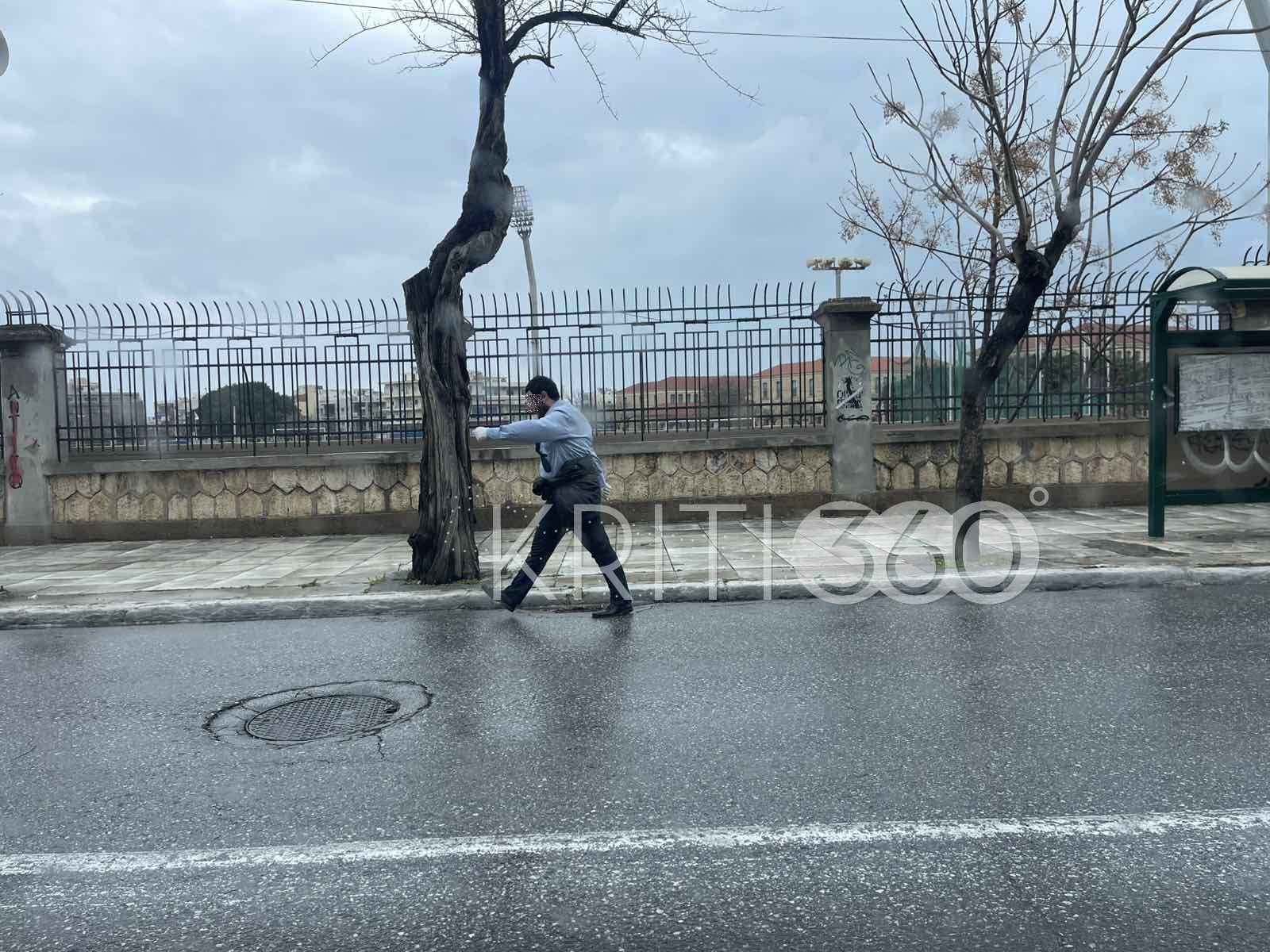 Οι δυσμενείς καιρικές συνθήκες οδήγησαν τις αρχές στην απόφαση να ματαιώσουν τις μαθητικές και στρατιωτικές παρελάσεις στα Χανιά, με αποτέλεσμα οι προγραμματισμένες εκδηλώσεις να μην πραγματοποιηθούν. Ωστόσο, ένας πολίτης επέλεξε να κινηθεί διαφορετικά, εκφράζοντας με προσωπική πρωτοβουλία τον σεβασμό του προς την ημέρα.