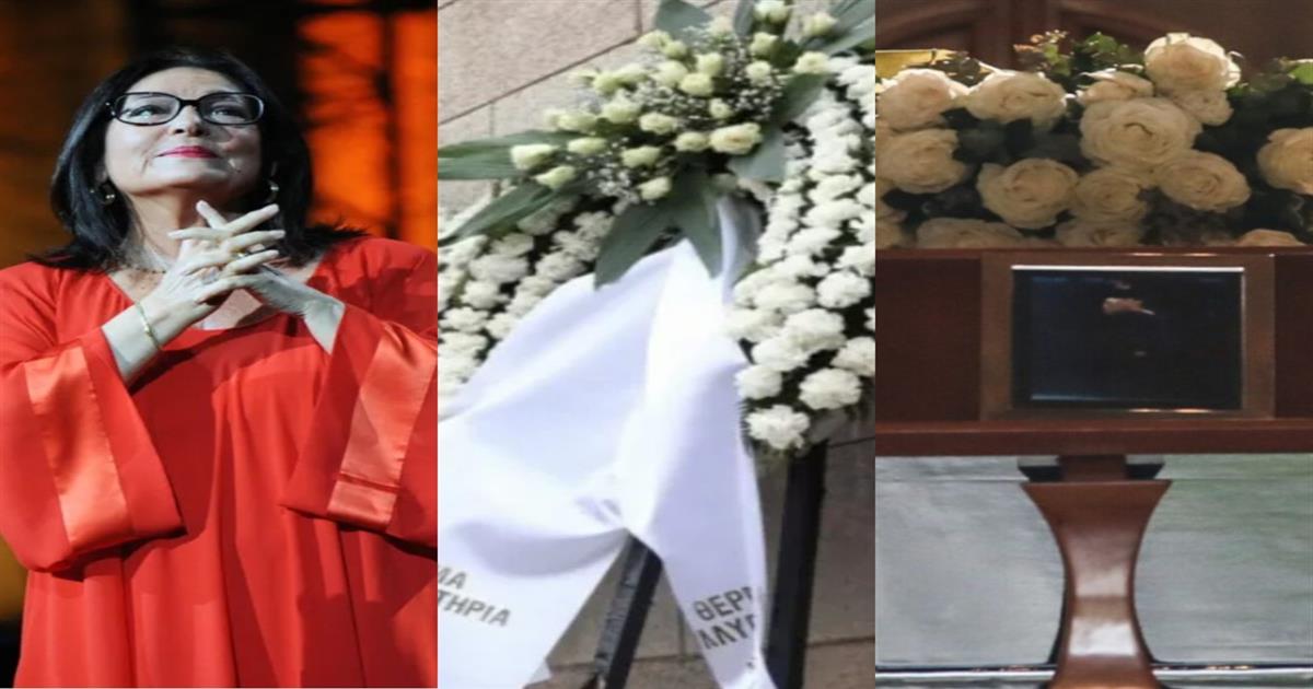 Ο χώρος γύρω από τον ναό έχει κατακλυστεί από στεφάνια, με λόγια αγάπης και ένα “αντίο” στη σπουδαία Μαρινέλλα.