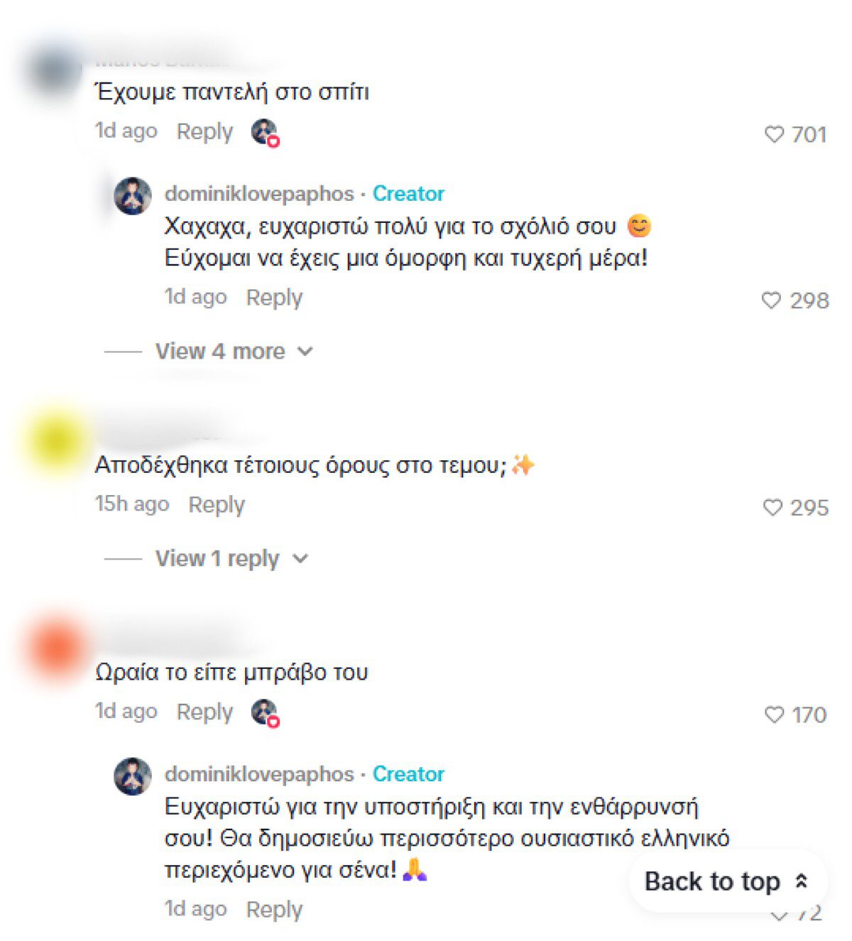 Ο νεαρός χρήστης του TikTok επιχείρησε να τραγουδήσει ένα από τα χαρακτηριστικότερα τραγούδια του Παντελή Παντελίδη, το «Παραμυθιάζομαι». Ο Dominik, που ζει στην Πάφο της Κύπρου, όπως αποκάλυψε, θέλησε να «τεστάρει» τα ελληνικά του, με έναν πιο διασκεδαστικό τρόπο. Στην περιγραφή της δημοσίευσής του, έγραψε αστειευόμενος: «Μήπως κατά λάθος προσέβαλα όλη την ελληνική γλώσσα;».